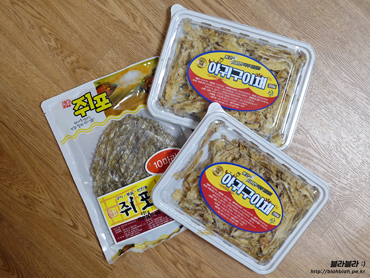 아귀구이채 2개와 쥐포 1봉지를 샀어요 ㅎㅎ