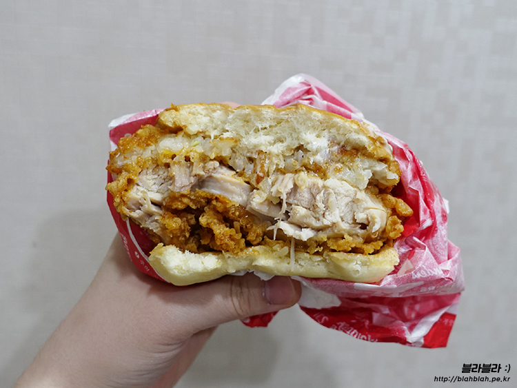 패티는 닭다리살로 만들어져서 퍽퍽하지 않고