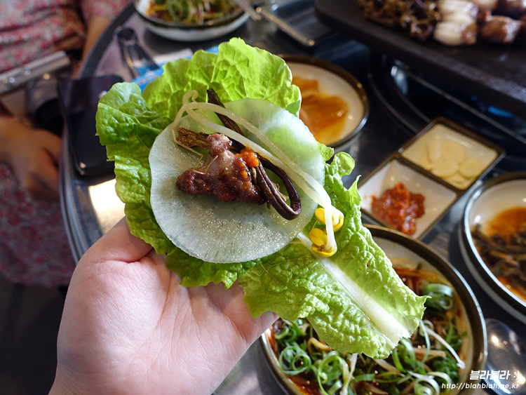고사리랑 콩나물까지 넣어서 쌈싸서 한입!