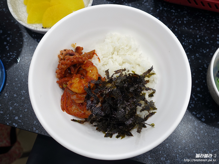 밥 위에 낙지를 적당히 잘라서 올려서