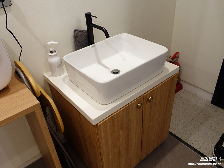 손 닦고 들어가기 좋아요.(물비누도 있어요!)