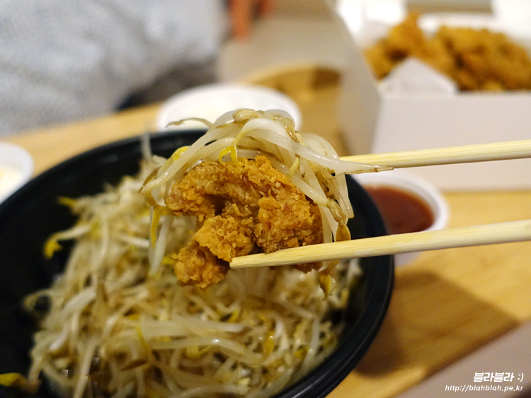 치킨이랑 숙주와 밑에 깔린 소스를