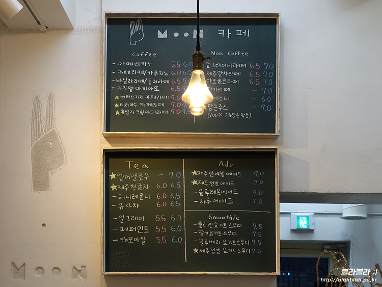 토끼문 카페 메뉴와 가격입니다.
