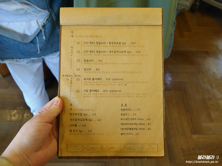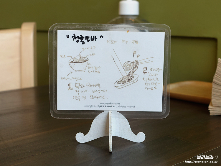 테이블 옆에서 친절하게 청귤소바