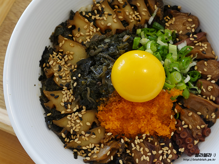 곤드레나물, 날치알, 파 그리고 계란노른자가 화룡점정!