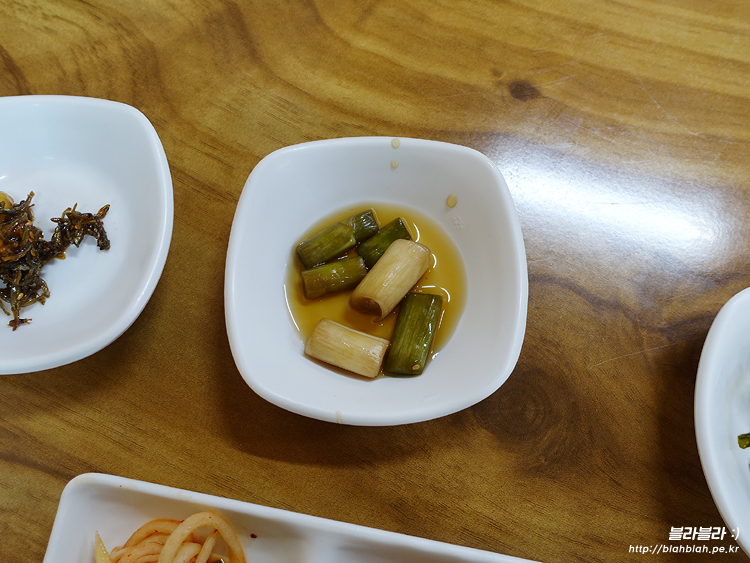 기본찬으로 나온 무생채, 김치볶음, 부추볶음(?)