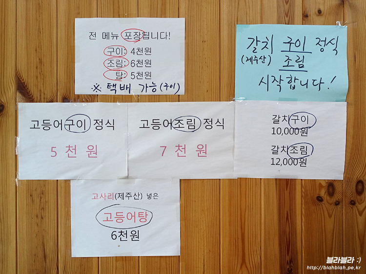 착한제주고등어 메뉴와 가격입니다.