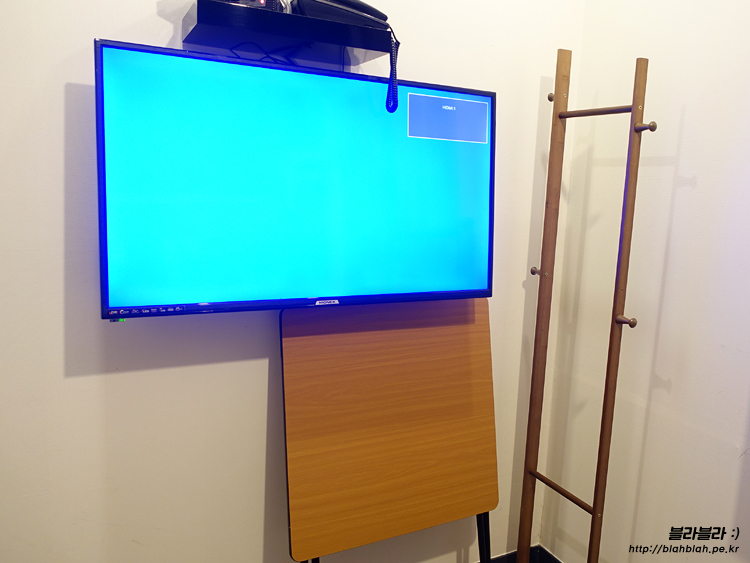 티비와 접이식 테이블, 옷걸이가 있답니다.