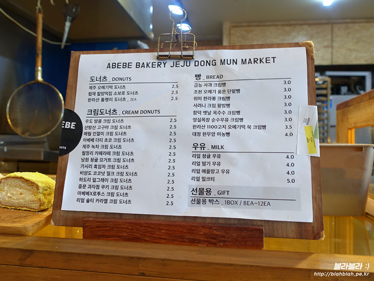 아베베 베이커리 메뉴와 가격입니다.