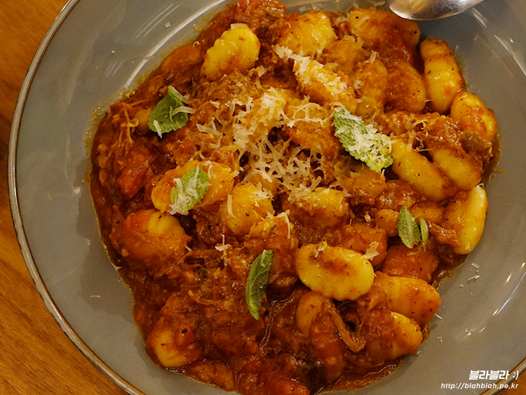 고기가 풍부한 토마토소스에 쫄깃한 식감의