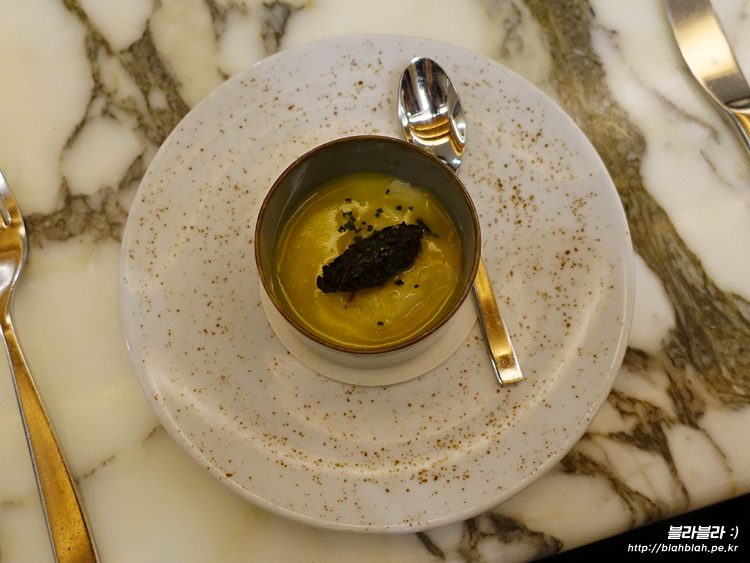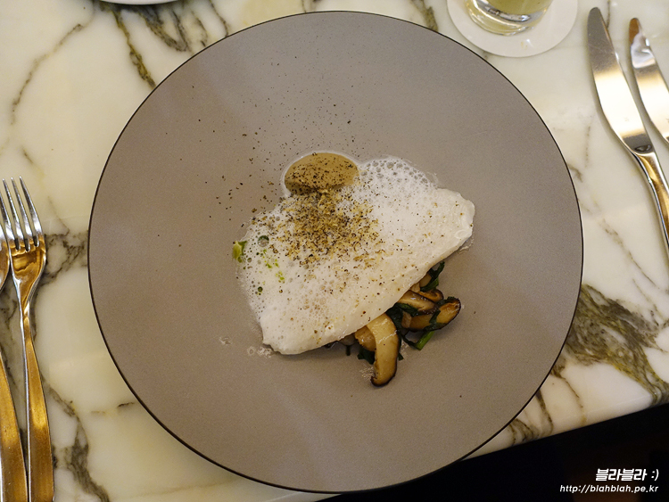 버섯퓨레, 갈릭폼, 부추, 표고버섯, 트러플이 같이 나오는데