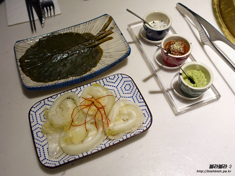그리고 고기와 같이 먹을 소금, 쌈장, 와사비