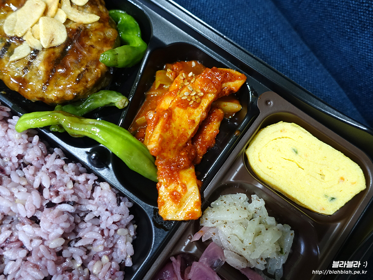 떡갈비한상 도시락을 자세히 살펴보겠습니다.