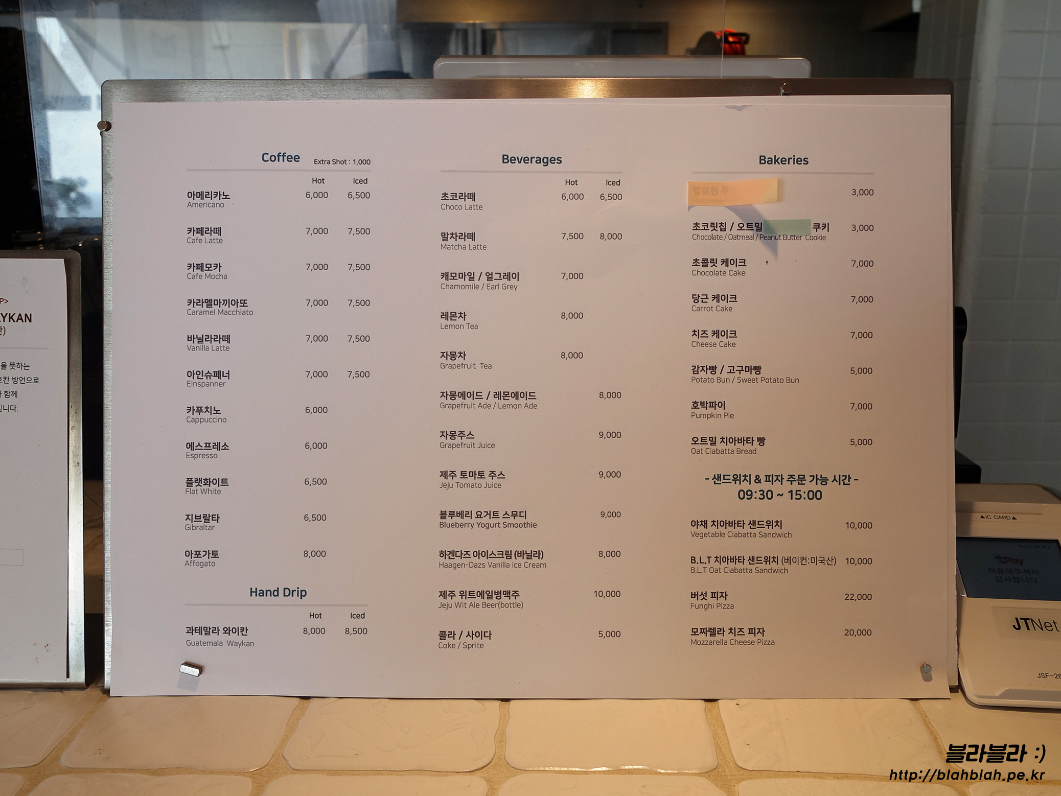 서귀포 허니문하우스 메뉴와 가격입니다.
