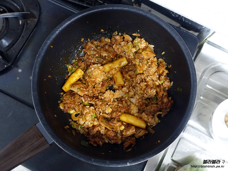 집에 남은 찬밥을 넣어서 잘 볶아주면 완성!!