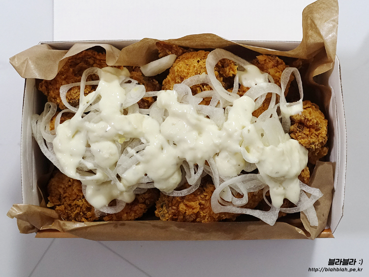 상큼한 소스에 아삭한 양파, 바삭한 치킨의 만남