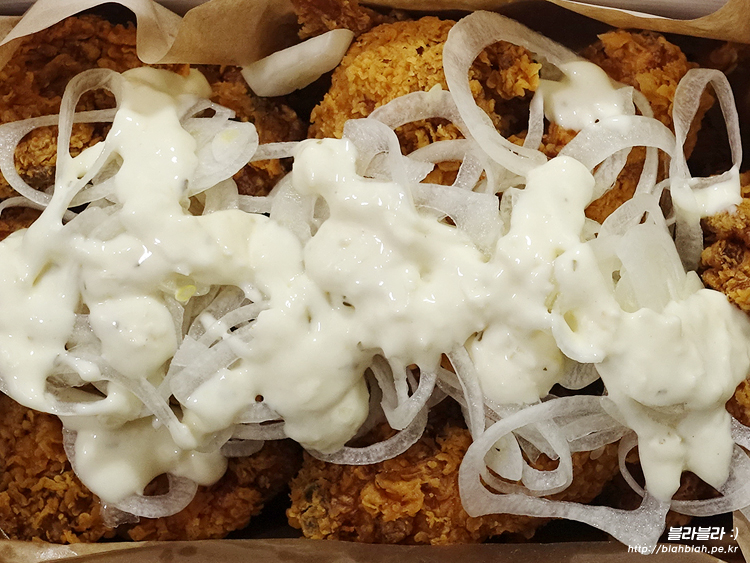 상큼한 소스에 아삭한 양파, 바삭한 치킨의 만남