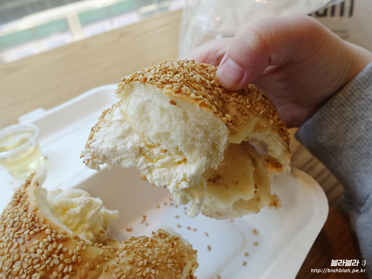 베이글사이에 크림치즈가 가득 들어있어요~!