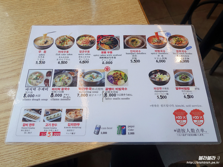 수유리 우동집 메뉴와 가격입니다.