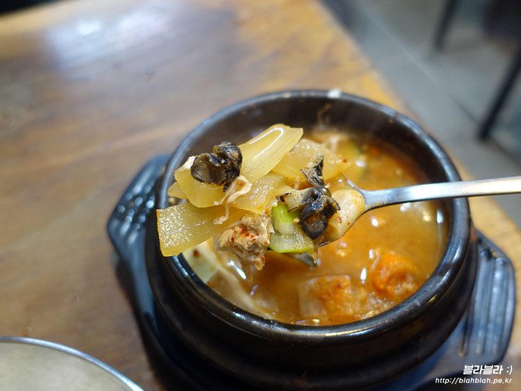 맛있는 된장찌개에 우렁이까지 들어있어서