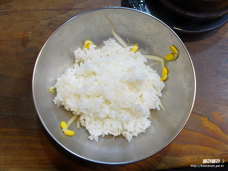 콩나물과 밥 아래 약간의 참기름이 뿌려져서 나와서