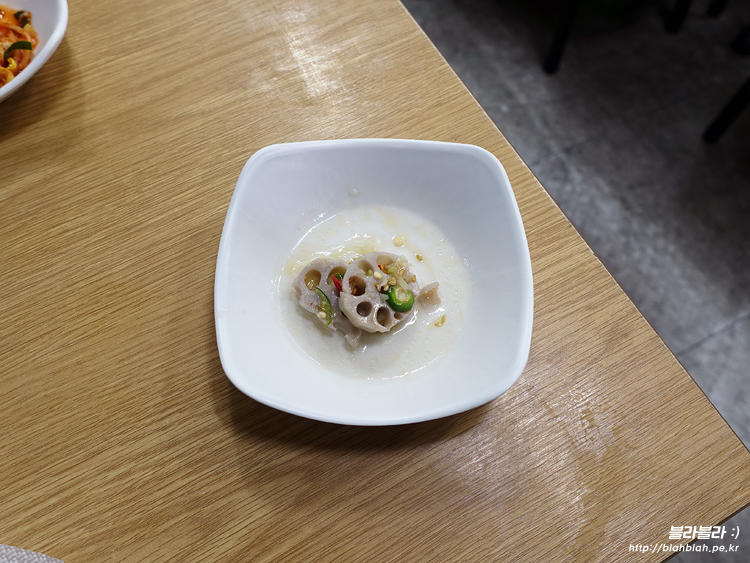 연근을 살짝 새콤한 소스에 버무린듯한?