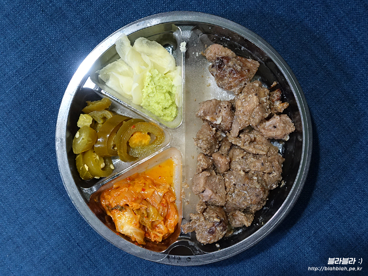 볶음김치, 목살큐브구이로 이루어져있고