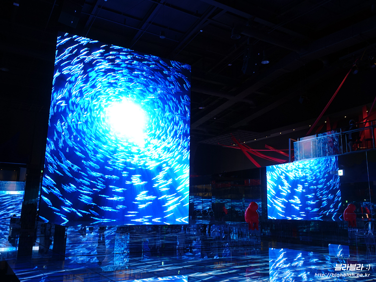큰 벽과 바닥이 화면으로 구성되어있고