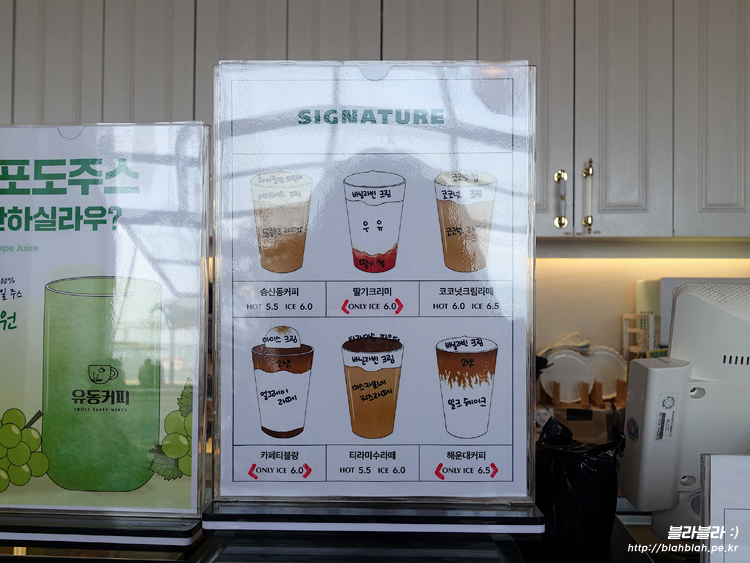 유동커피 메뉴와 가격입니다.