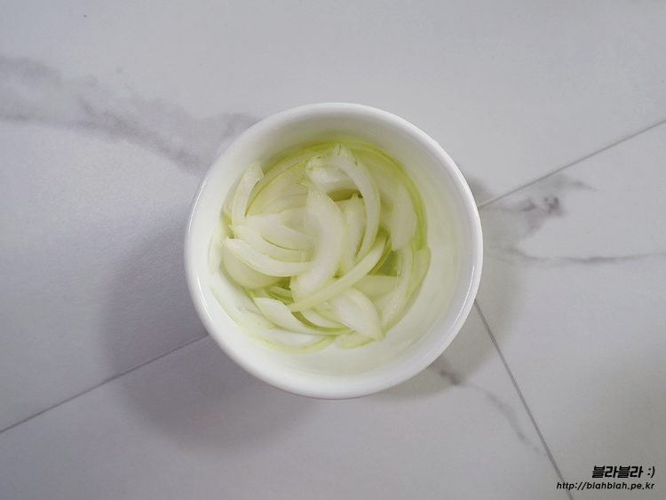 먹다보니 뭔가 심심해서 양파채를 썰어왔는데