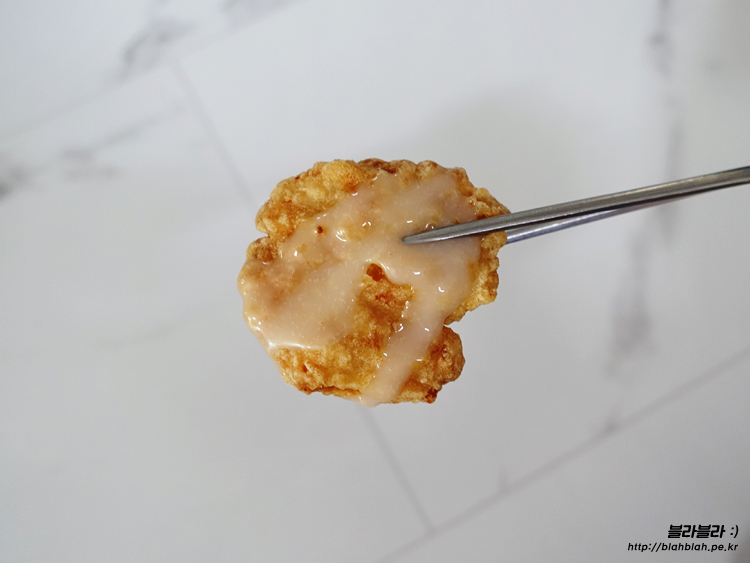 순살치킨과 탕수육의 중간쯤 되는듯한 느낌이랄까요?
