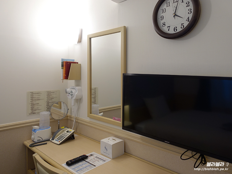 이렇게 테이블과 거울, 헤어드라이기, 가습기, 티비가 있었구요.