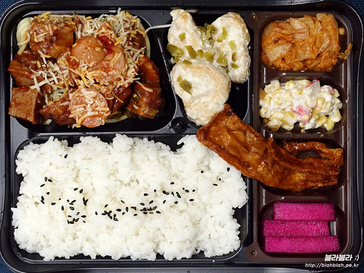 치킨무같은 맛인데 메인반찬들이 고기고기해서