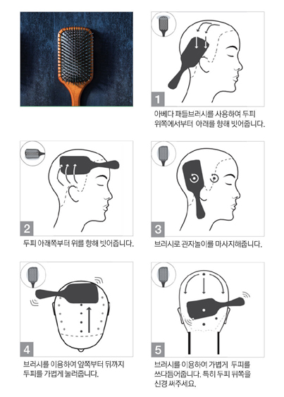 찾아보니까 아베다 패들 브러쉬 사용방법도 있어서