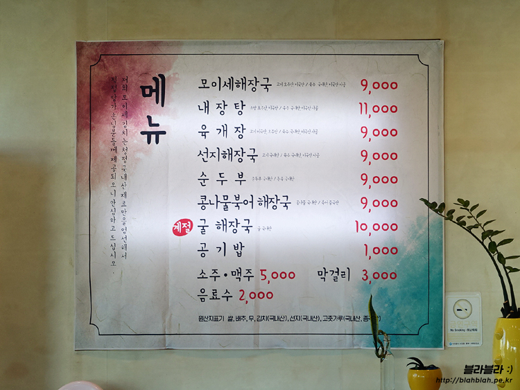 모이세해장국 메뉴와 가격입니다.