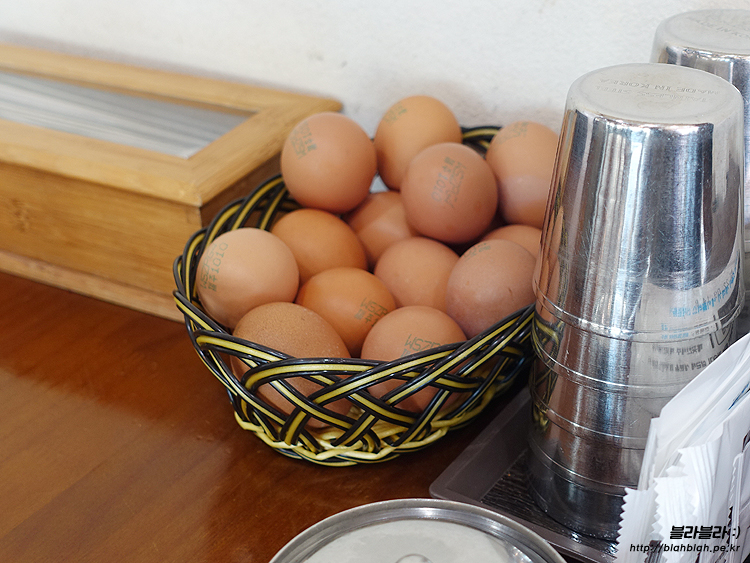 테이블마다 있는 날계란을 기호에 따라