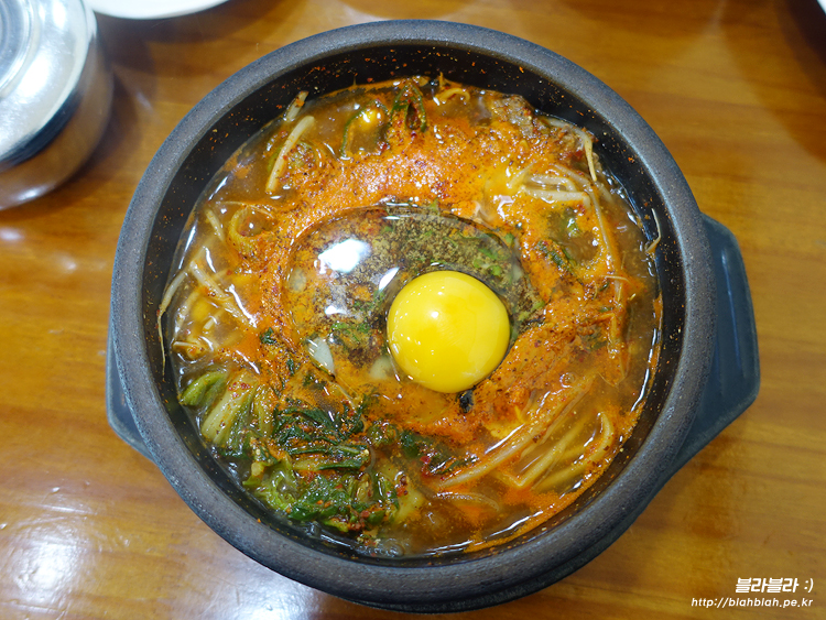 계란까지 넣어서 완전 든든하게 해장국 한그릇 뚝딱!