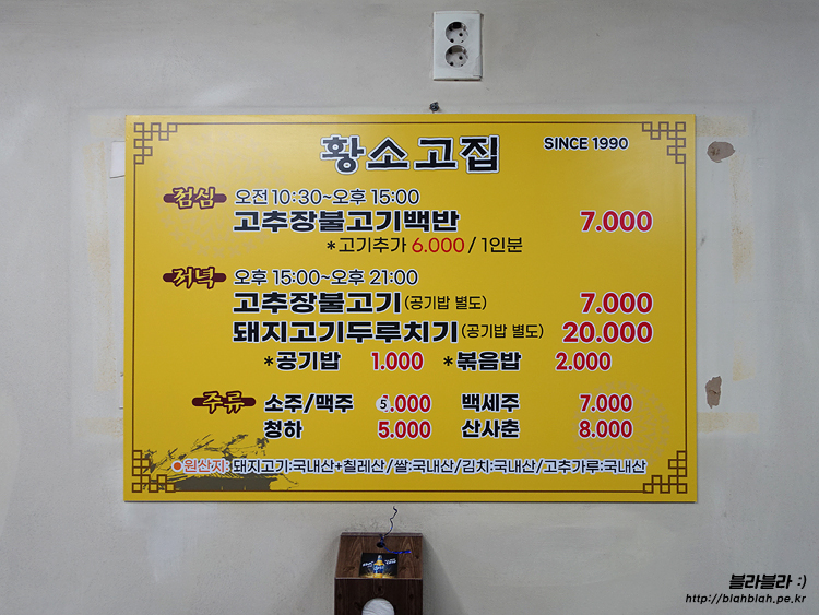 황소고집 메뉴와 가격입니다.