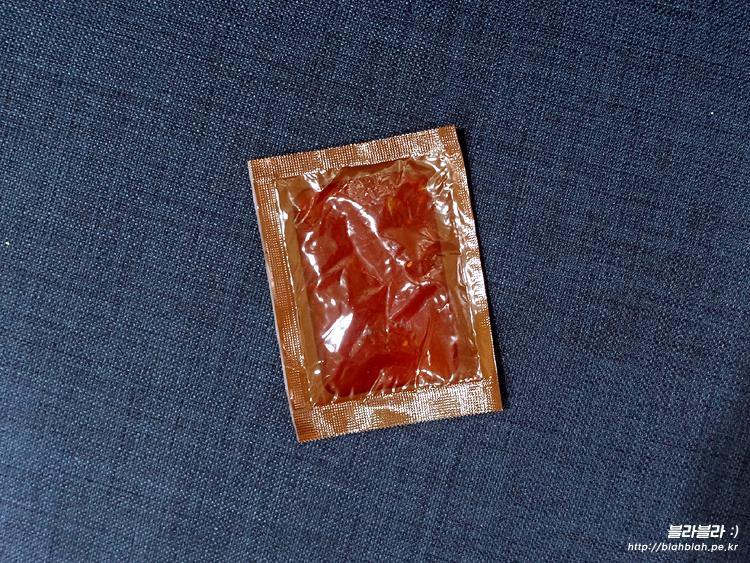 옆에 고기소스가 옆으로 새서 파채소스 겉면에 다 묻어가지고...