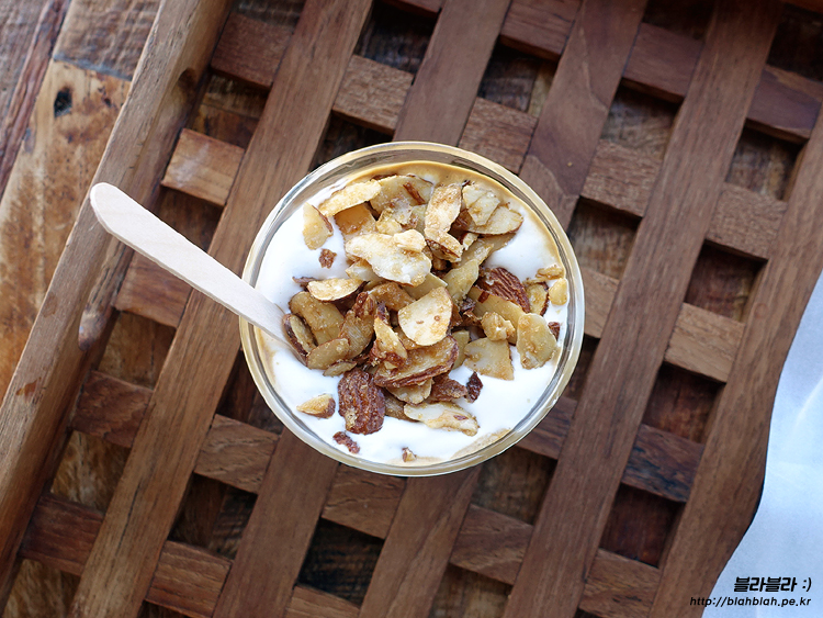 아몬드 슬라이스가 올라가 있어요.