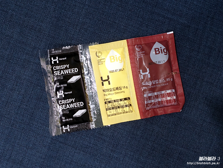 빅한솥덮밥소스가 같이 제공되더라구요.