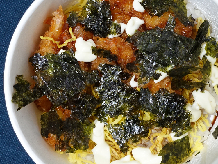 덮밥소스와 마요드레싱을 뿌려주고