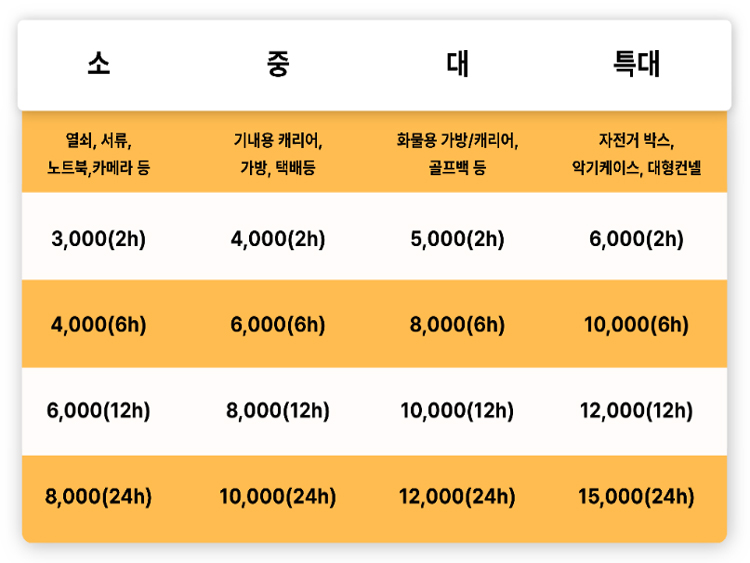 짐캐리 제주공항 수하물보관소 이용요금 입니다.