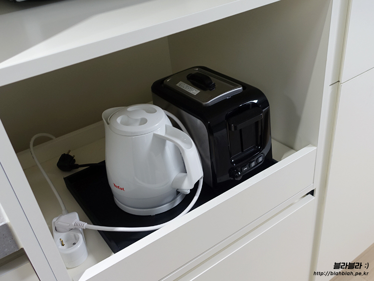 밑에는 전기포트와 토스트기까지 있었어요.