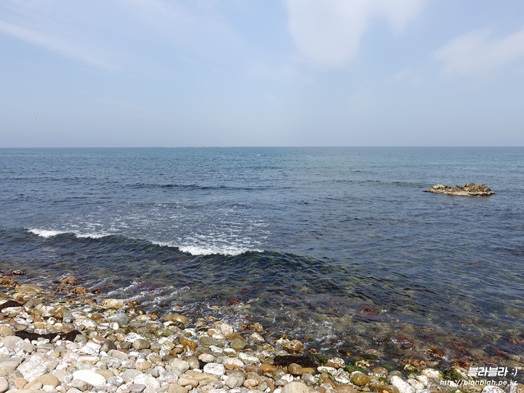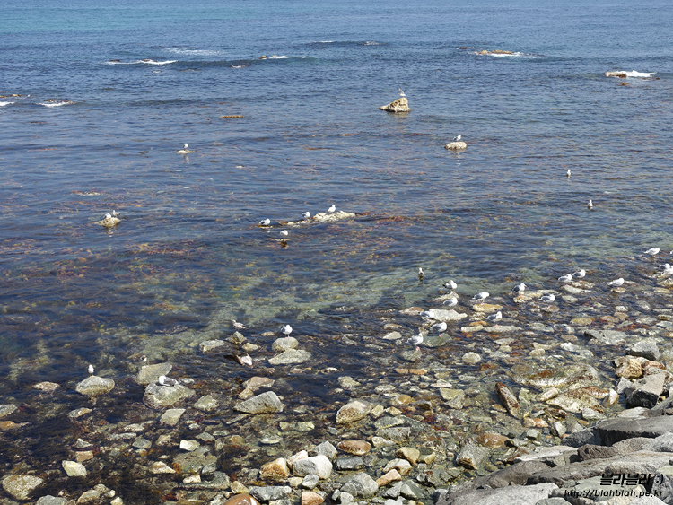 바다를 보면서 걷는데 바다위 바위에