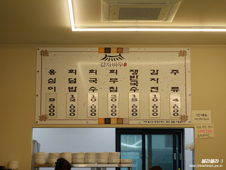 감자바우 메뉴와 가격입니다.
