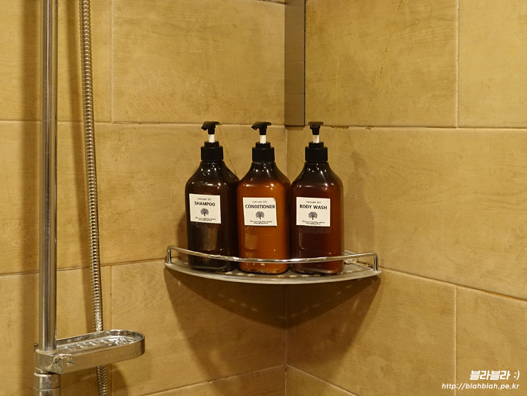샴푸, 컨디셔너, 바디워시가 준비되어있고