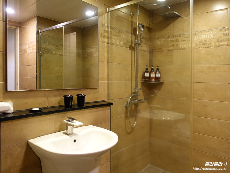 화장실은 욕조는 없고 샤워부스만 있는 형태예요.
