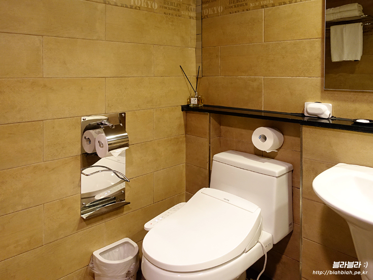 화장실은 욕조는 없고 샤워부스만 있는 형태예요.