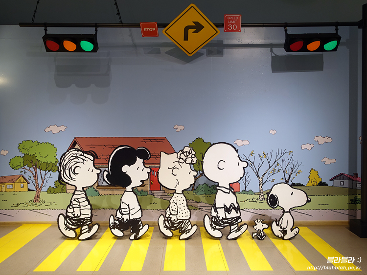 횡단보도를 건너는 스누피와 친구들